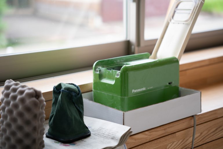 藤里学園では、黒板と電子黒板を併用。黒板消しクリーナーも現役で活躍中。