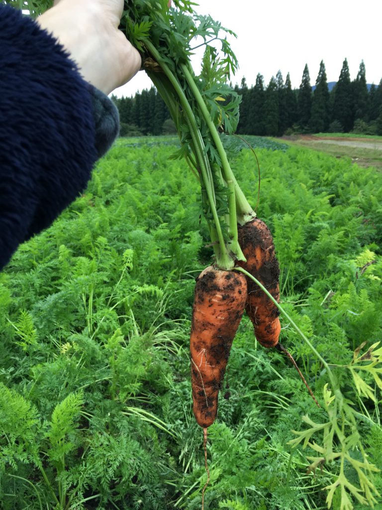 収穫したてのにんじん。葉っぱも美味しくいただきます。