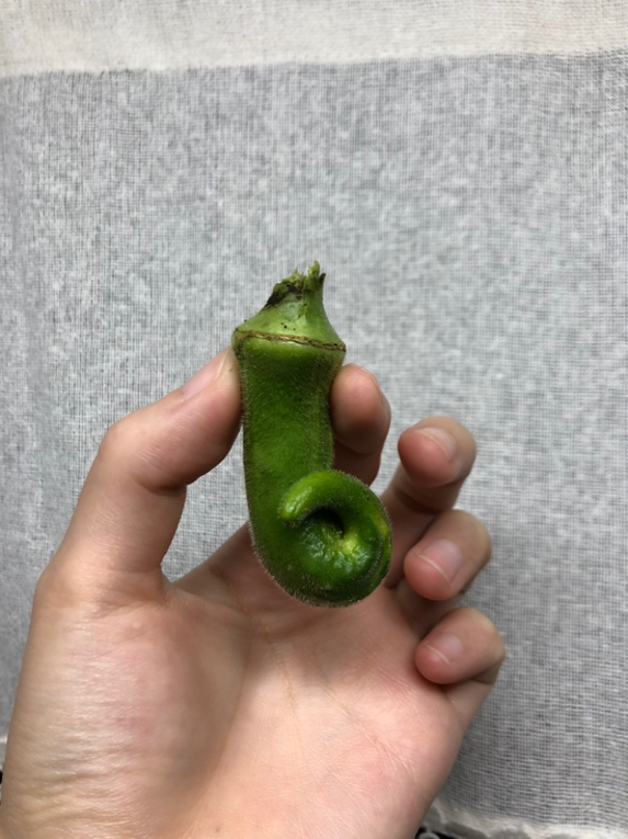 渦を巻いたオクラ。ミニサイズなのが可愛い。