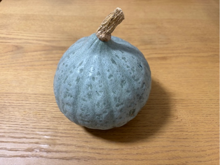 甘味が強い白いカボチャ。ヘタの部分がぼろっと取れるころが食べ頃なんだとか。