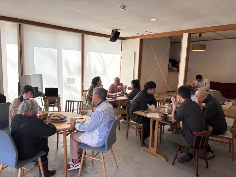 交流パーティーでは、地域おこし協力隊の奈良仁志さんが用意してくれたサンドイッチやドリンクを囲みながら、グループでの会話を楽しみました。