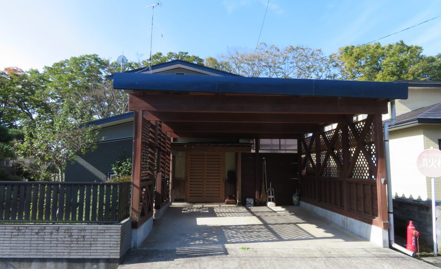 住宅裏手に物置小屋あり。